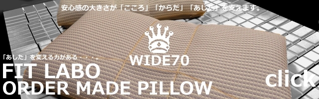 FITLABOオーダーメイド枕ワイド70サイズは、これまで同様に首の長さに応じてM寸、L寸の側生地仕様はそのまま残し、両サイド3,5センチずつ幅広くしました。たった3,5センチずつですが、体感頂くとほとんどのお客様は、FITLABOオーダーメイド枕ワイド70サイズをお選びになられます。