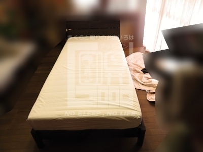 2階からベッドマットレス(センベララテックスマットレス:ナチュラスリープ)を下ろしてセット、ベッドメイクを行い終了。