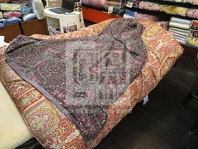 さっと見せたのがダウンパワー440、グース95%、重量1,2キロの2層構造の羽毛掛けふとんでした。