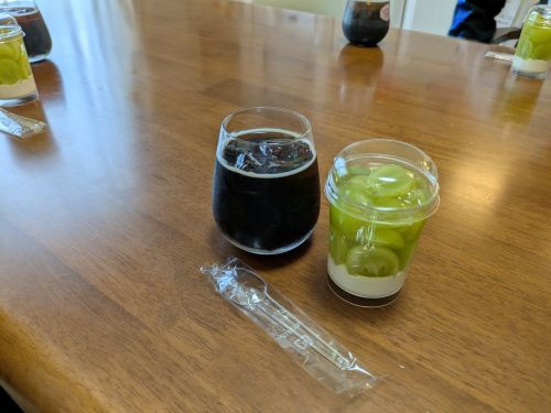 すぐにご主人様が、アイスコーヒーとシャインマスカットのケーキを出して下さいました。