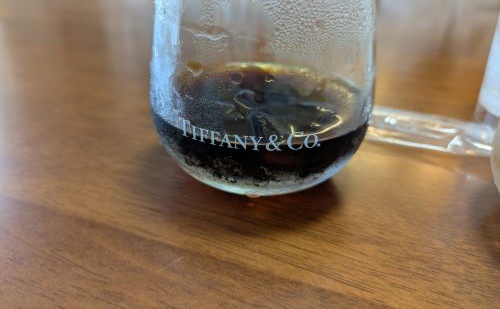 初めに、ティファニーのコップと知っていれば、コップを持った瞬間、思わず手が震え、コップを落として割っていたかもしれませんし、コーヒーやケーキの味も全く分からなかったと思います。