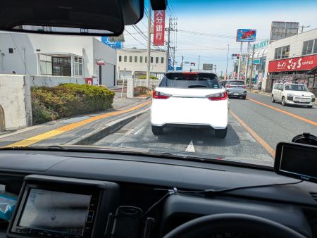 そして、大切な手土産を車の後方に載せ、ご主人様の車の後ろをついていきました。