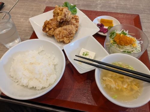 私と助手は、鶏からあげ定食をいただき、ご主人様は、宇佐の神そば&おにからセット(おにぎりと唐揚げ)でした。
