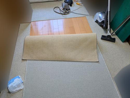 「全部、カーペットばやりかえんでもいいちゃないですか?カビの部分くらいをカットして、そこに新しいカーペットを敷けばいいっちゃないですかね・・・」