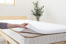 (マットレスの上にラテックス素材のマットレストッパーを重ねているイメージ画像です。)