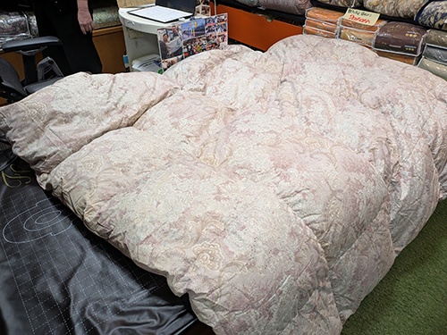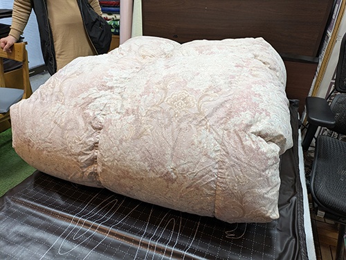 そして、本日、羽毛ふとんを持ってご来店されました。