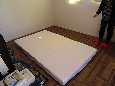 私のブログファンの方は、あれっ?ウールパッドはしないの?と思われた方もいるかと思いますが・・・今日の納品時に間に合いませんでしたので後日配送するようになっています。ですので、今日はウールパッドなしで寝て頂くことになります。